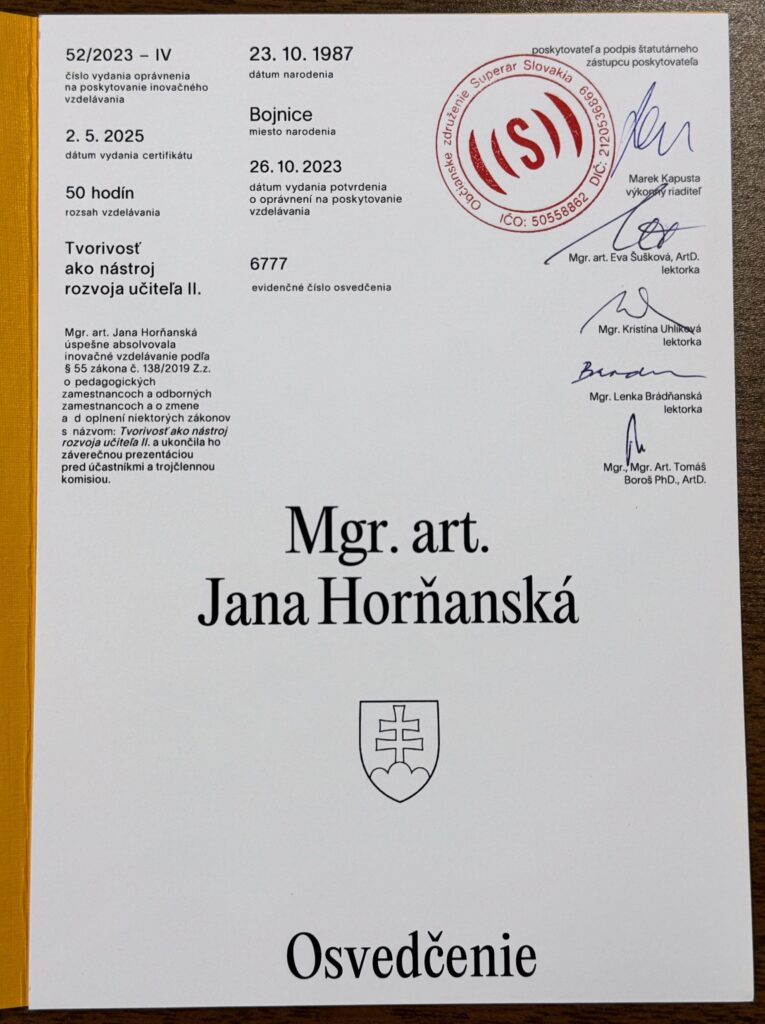 Mala som možnosť sa vzdelávať pod vedením Tomáša Boroša, Ivana Šillera, Evy Šuškovej, Jiřího Boudu, Zdislavy Pechovej, Patricie Windsor a ďalších inšpiratívnych osobností ✨