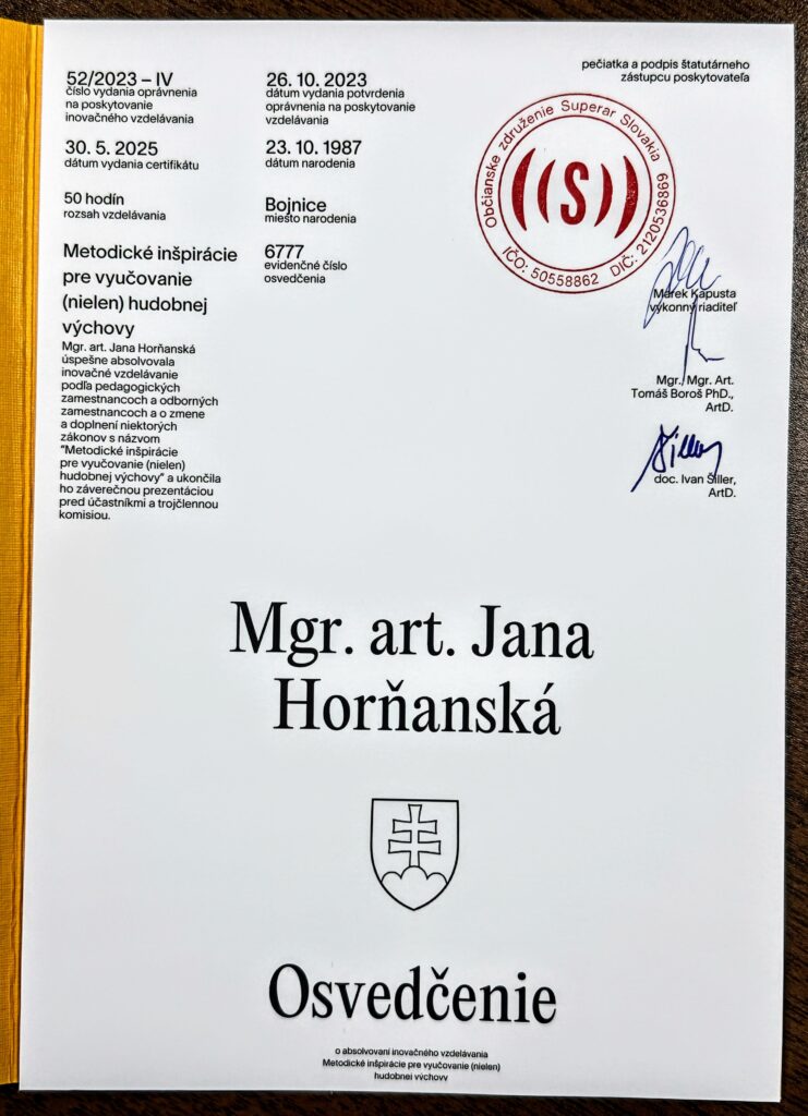 🌸 „Vzdelávanie vnímam ako nekončiacu cestu objavovania, ktorá obohacuje mňa aj všetkých, s ktorými sa cez hudbu stretávam.“
